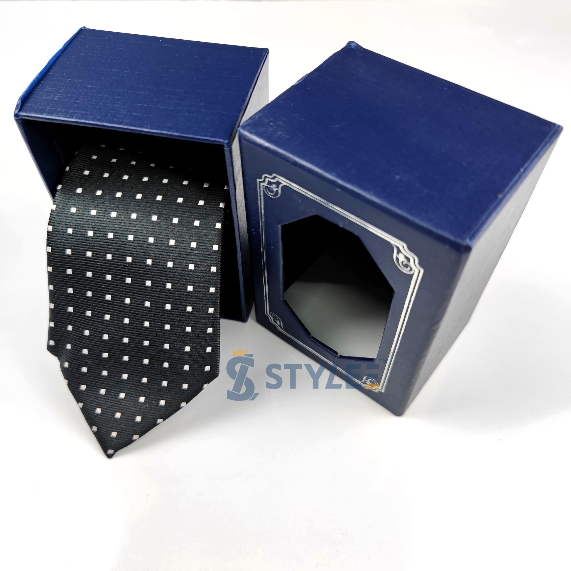 Cravate large noir avec boite